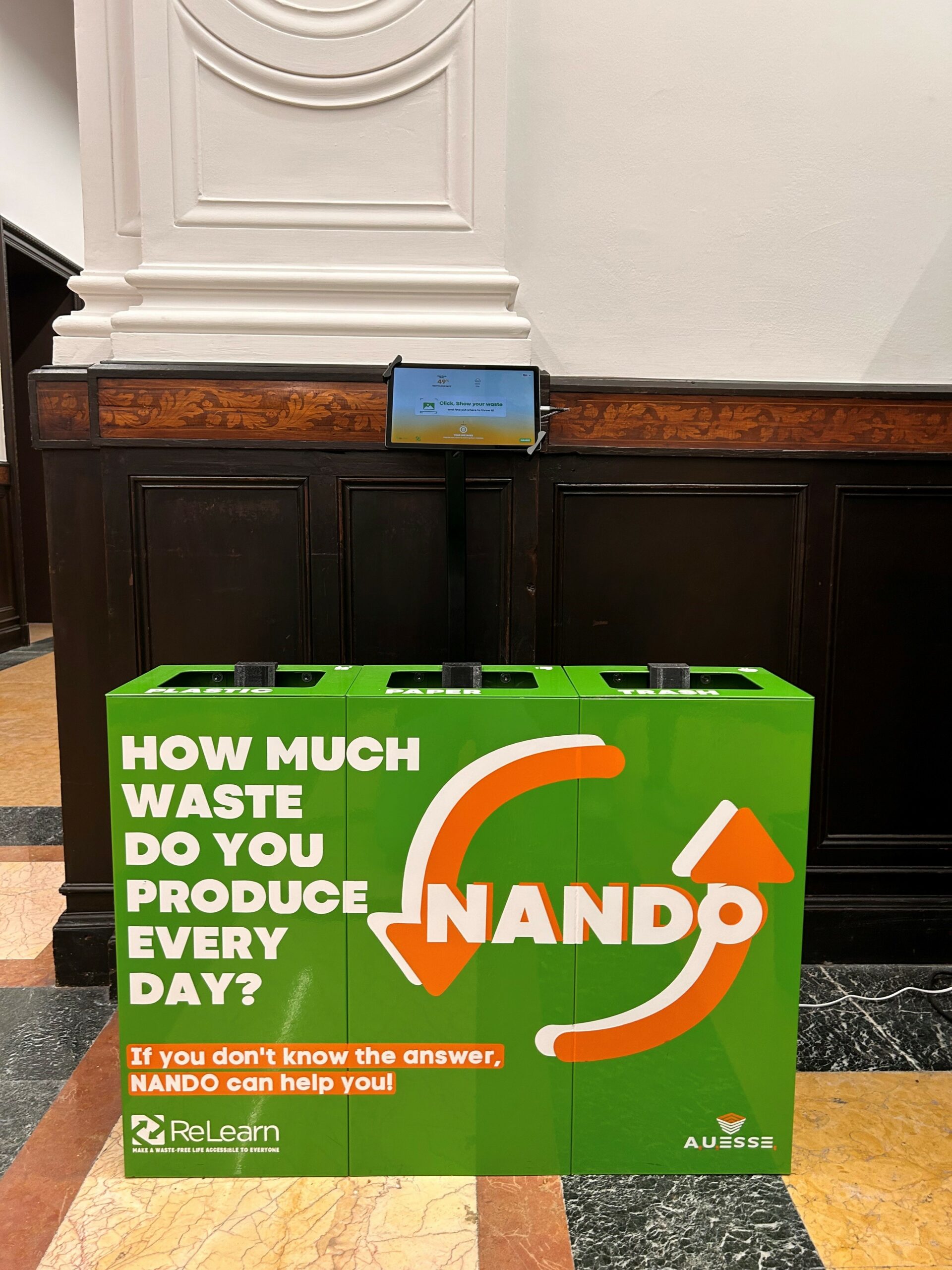 Nando, chiamato così in onore di Re Ferdinando II di Borbone, la prima figura politica ad emettere un’ordinanza per regolamentare la raccolta differenziata nel 1832. Il sistema sul quale il prodotto si basa sfrutta la tecnologia dell’intelligenza artificiale ed è composto da una serie di sensori IoT utili a riconoscere la tipologia di rifiuto, inoltre, per utilizzarlo non occorre cambiare i cestini della raccolta differenziata. La tecnologia proposta infatti è facilmente installabile anche su cestini comunemente reperibili ed in commercio. Nando sfrutta inoltre la gamification, trasformando l’atto quotidiano del gettare un rifiuto in un momento di intrattenimento, attraverso il quale è possibile apprendere al meglio le buone pratiche per la raccolta differenziata. Un tablet, dopo aver scattato una foto del prodotto da gettare, sarà in grado di indicare la tipologia di materiale che lo compone ed il suo cestino di destinazione.